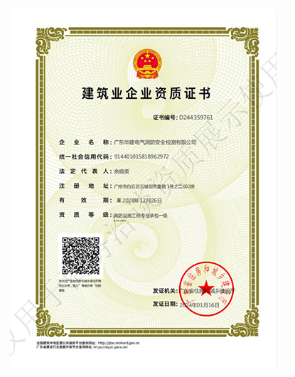 广东省消防检测分会常务会员单位、广州市消防协会会员单位,取得广东省质量技术监督局资质认定 CMA 计量认证书和 ISO9001 质量管理体系认证证书;消防设施工程专业承包一级和安全生产许可证。获得广东省“守合同重信 用”企业荣誉等称号。